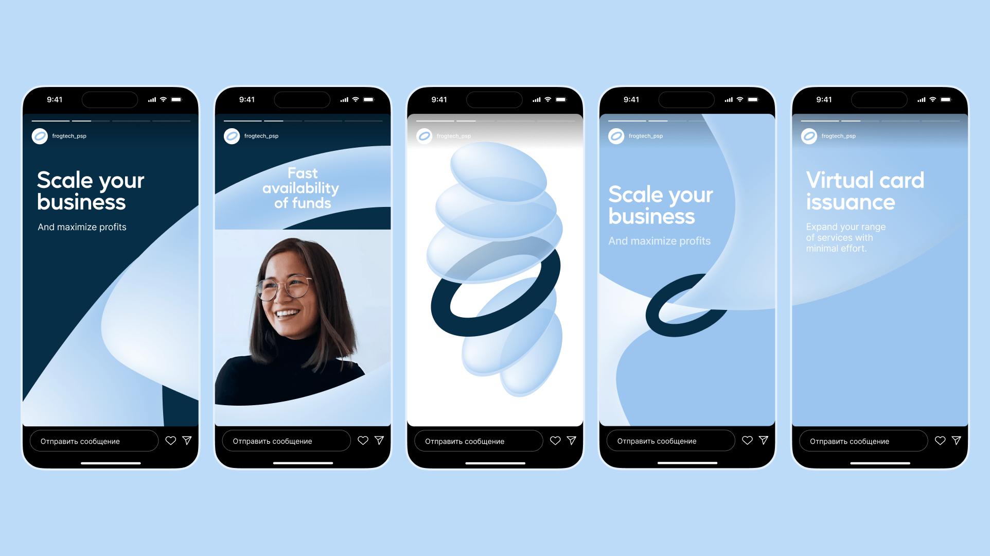 В основу палитры заложены мягкие светло-голубые и серо-лавандовые оттенки, которые формируют ощущение чистоты, спокойствия и визуальной лёгкости. Они создают современную, дружелюбную и технологичную атмосферу, делая коммуникацию бренда более открытой и аккуратной.