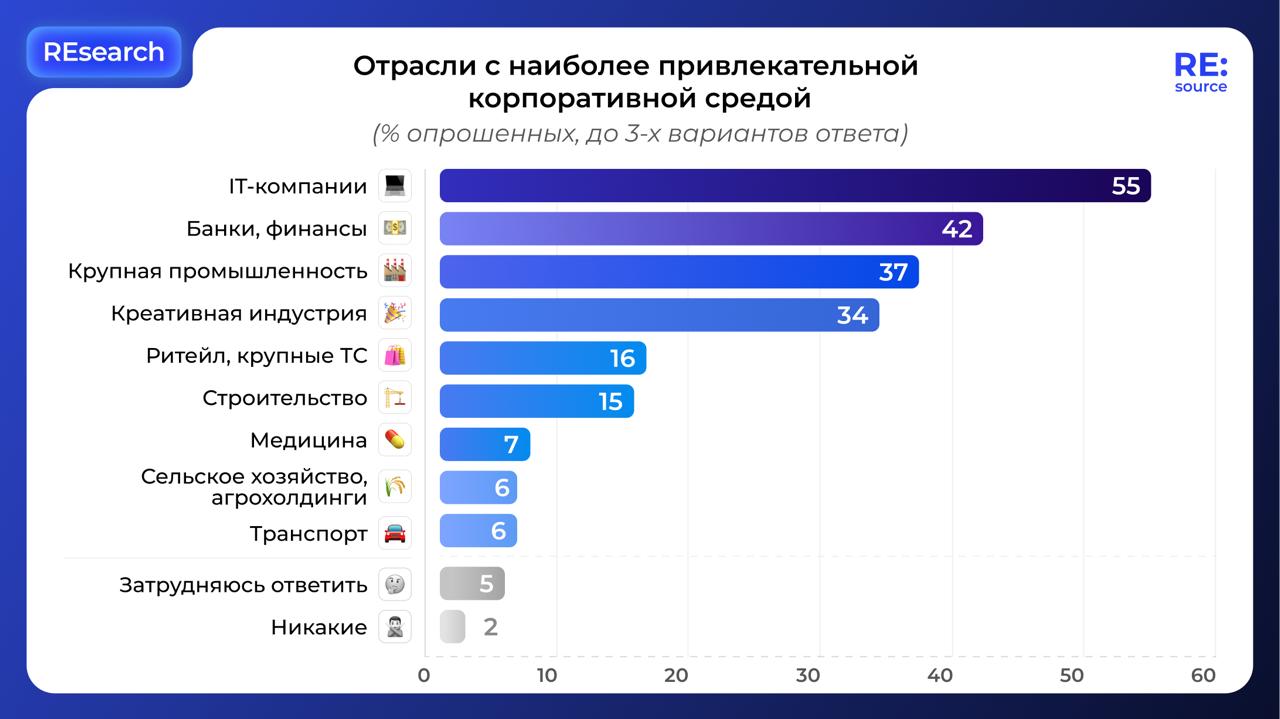 А вот креативную индустрию считают наиболее привлекательной только 34% респондентов.