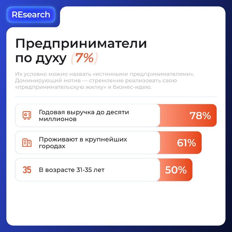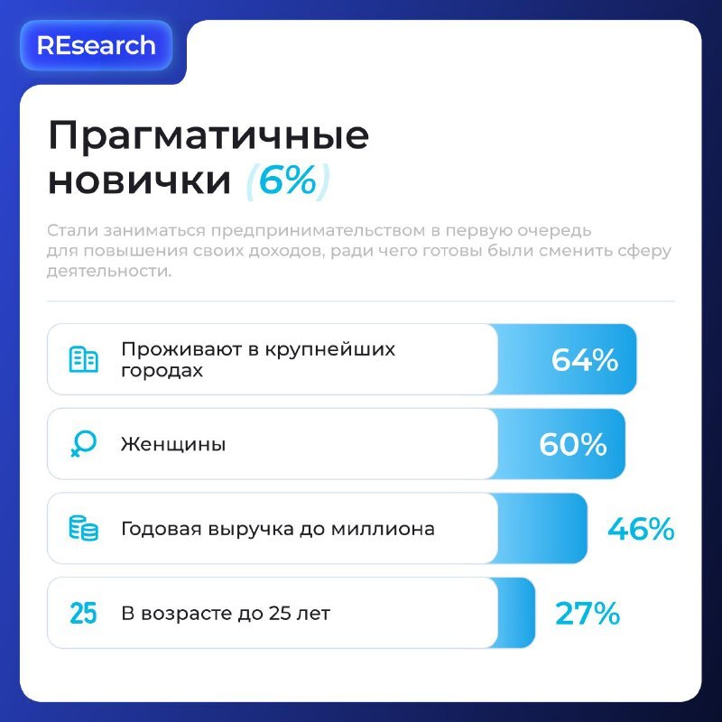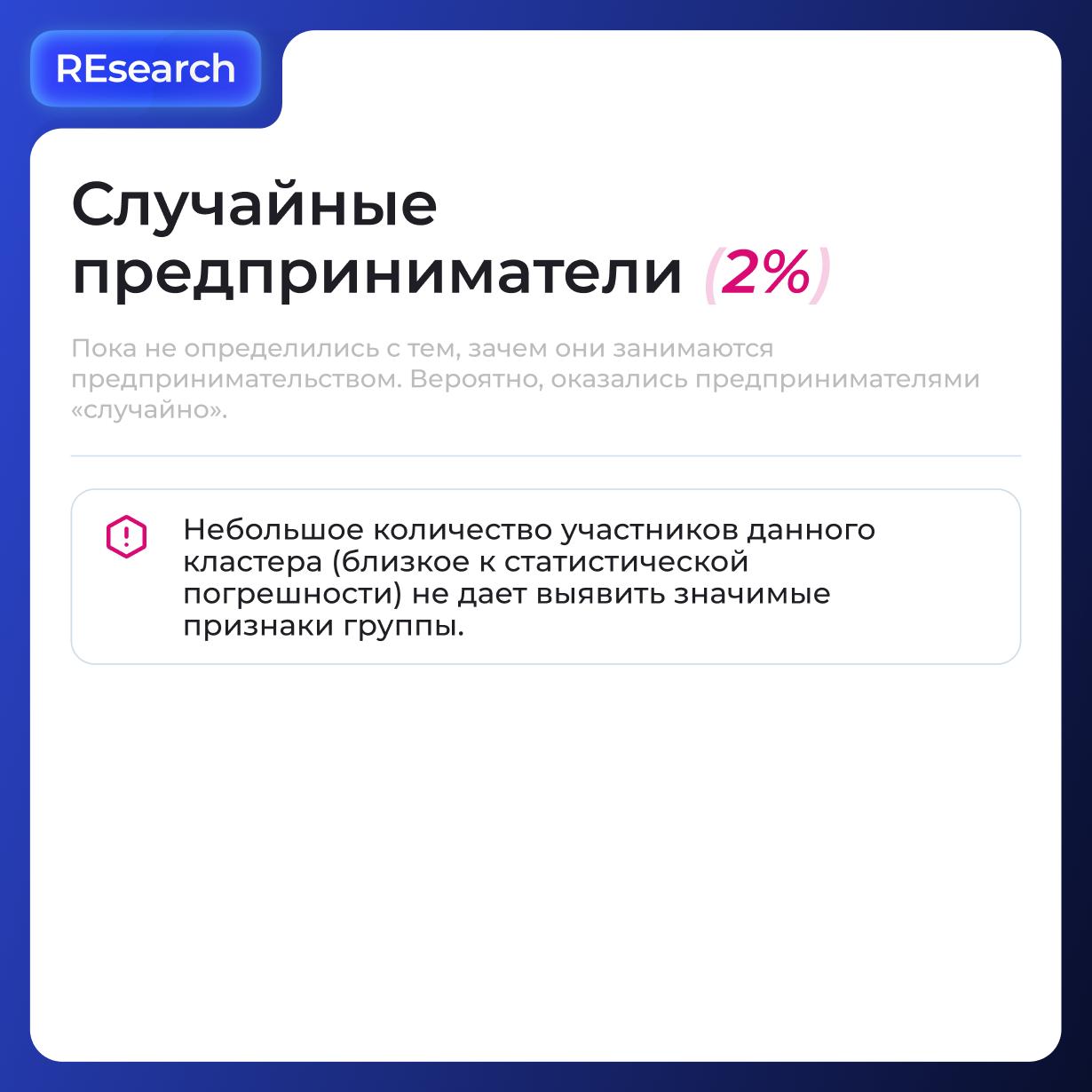 На основе результатов исследования они построили сегментацию молодых предпринимателей и выделили 5 ключевых кластеров