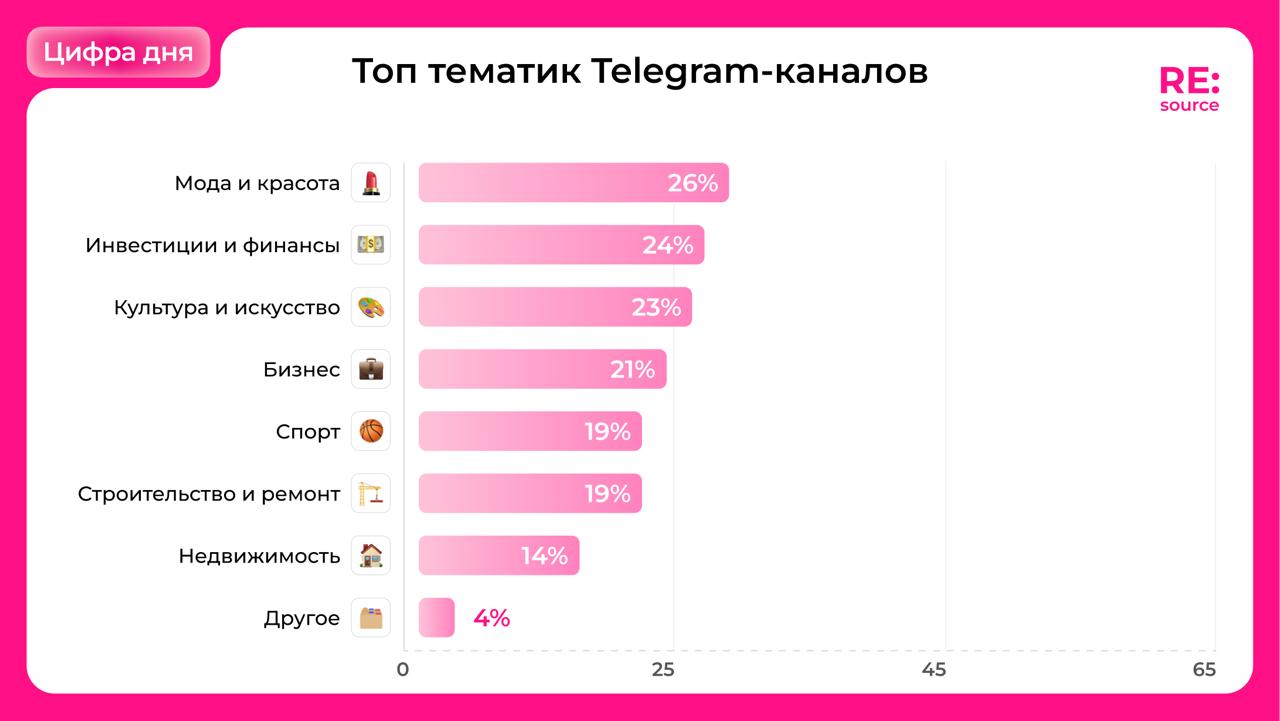 Так на вопрос о наиболее востребованных тематиках каналов ответили респонденты опроса: активные пользователи Telegram старше 18 лет, проживающие в городах-миллионниках России.