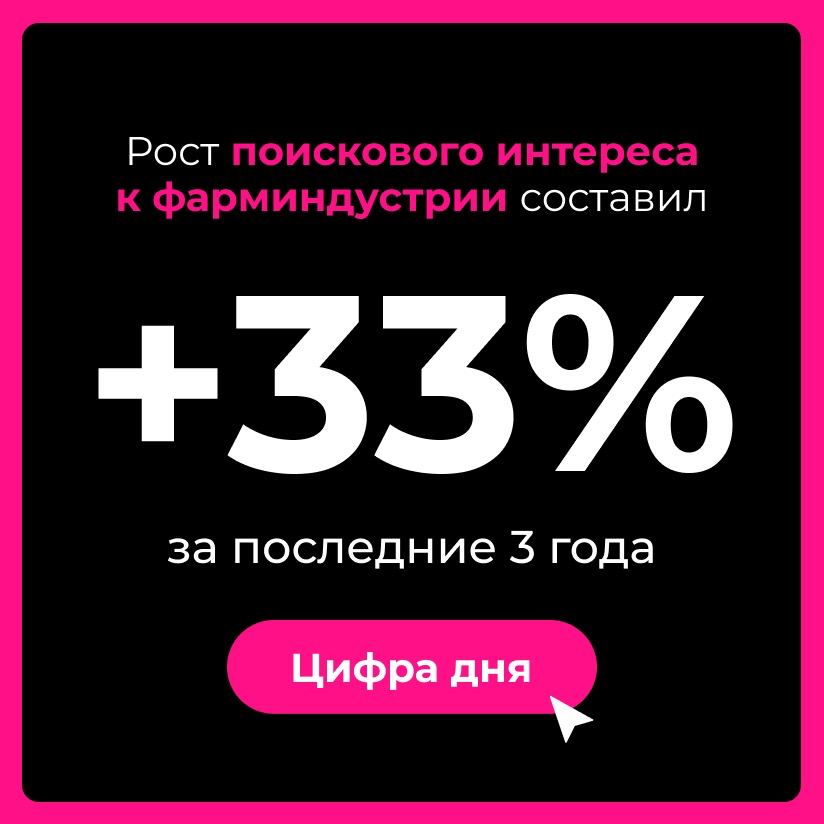 Рост поискового интереса к фарминдустрии — +33% за 3 года: в 2023 лекарства уже на 5-м месте по коммерческим запросам в интернете.