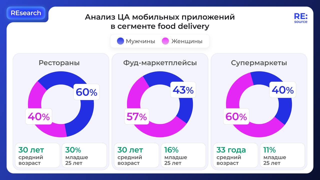 Мужчины более склонны заказывать готовую еду, а женщины чаще пользуются приложениями супермаркетов